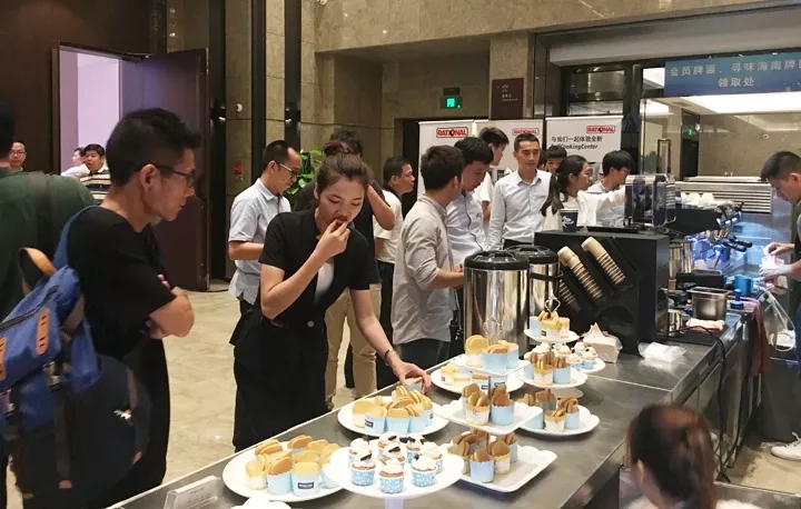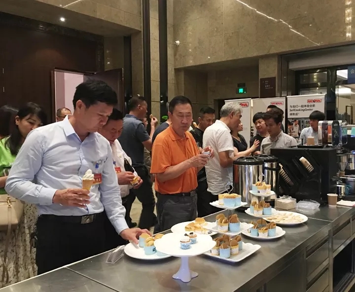 现场体验咖啡、冰淇淋、蛋糕、蛋挞、曲奇饼的人群络绎不绝,不仅享受“甜点”更是对智能餐饮设备系统深入的了解认知。