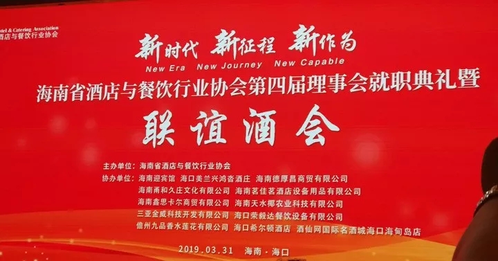 海南省酒店与餐饮行业协会于3月31日在海口展开了“2019年海南省酒店与餐饮行业年会暨海南省酒店与餐饮行业协会第四届理事会就职典礼”。