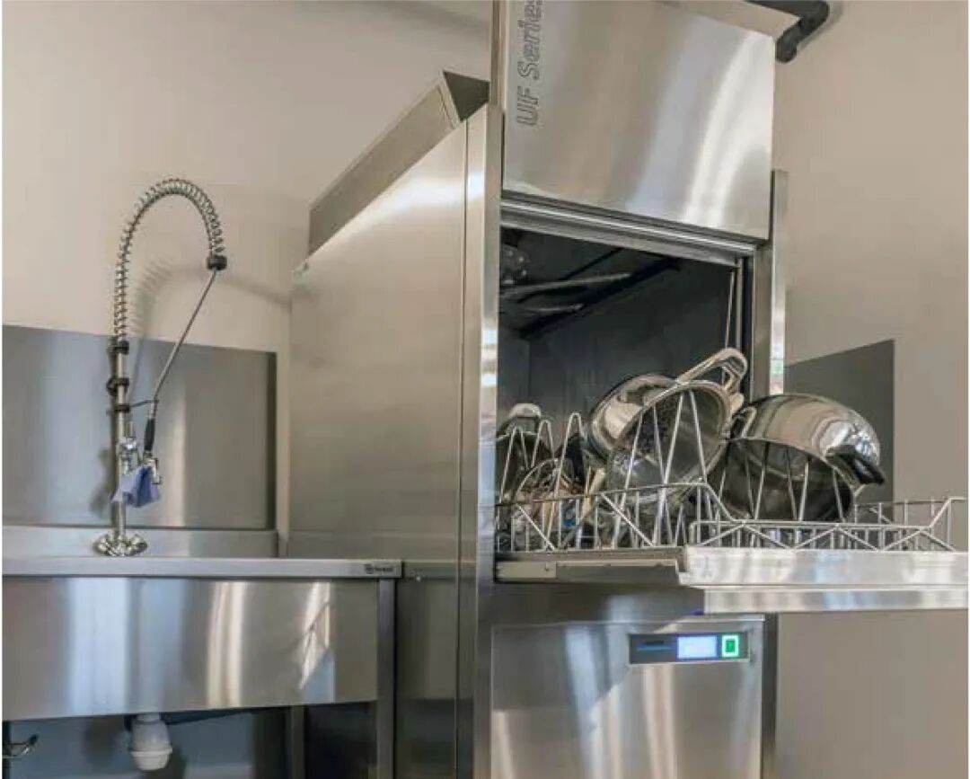 因此我们在选购商用洗碗机时要根据就餐人数、餐具量来确定机型。因为不同的机型一次性清洗碗碟的数量、速度、时间有所区别,就餐人数越多,需要清洗的餐具也就越多,餐具的尺寸也可能会越大,所以选购的商用洗碗机功能应该更齐全、尺寸应更大一点。