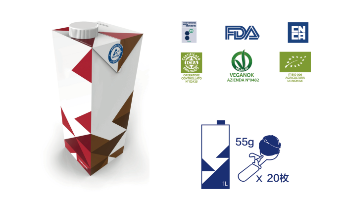 独家专利技术,化繁为简;以科技创新传统,融合多道传统冰淇淋制作工艺(配料,杀菌,均质烘焙,老化等)和意大利顶级配方及原料,通过UHT工艺和利乐无菌包装技术在阿尔卑斯有机牧场生产灌装。确保世界上任何一家店铺都能新鲜还原出原汁原味的意大利冰淇淋!
