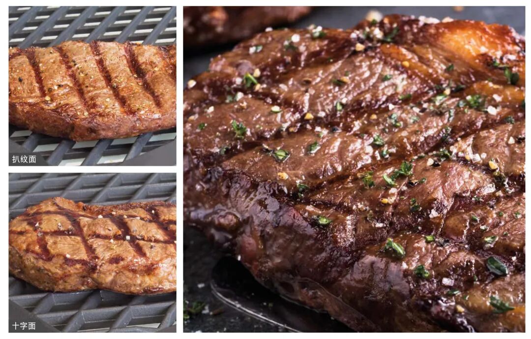 新十字扒纹烤架的创新结构设计使您能在仅使用一个烤架就获得两种不同的烧烤纹理。视所用的面而定,十字扒纹烤架可以在您的食材上制作出经典的条状烧烤条纹图案,也可以制作出大受欢迎的原版美国牛排餐厅中的交叉扒纹。烤架具有超优异的耐用性以及使用寿命长的特点。在烧烤食材时可以简单地放置冷烤架上,一次性装料,由于采用了具有杰出导热性的特制合金,所以无需预热。