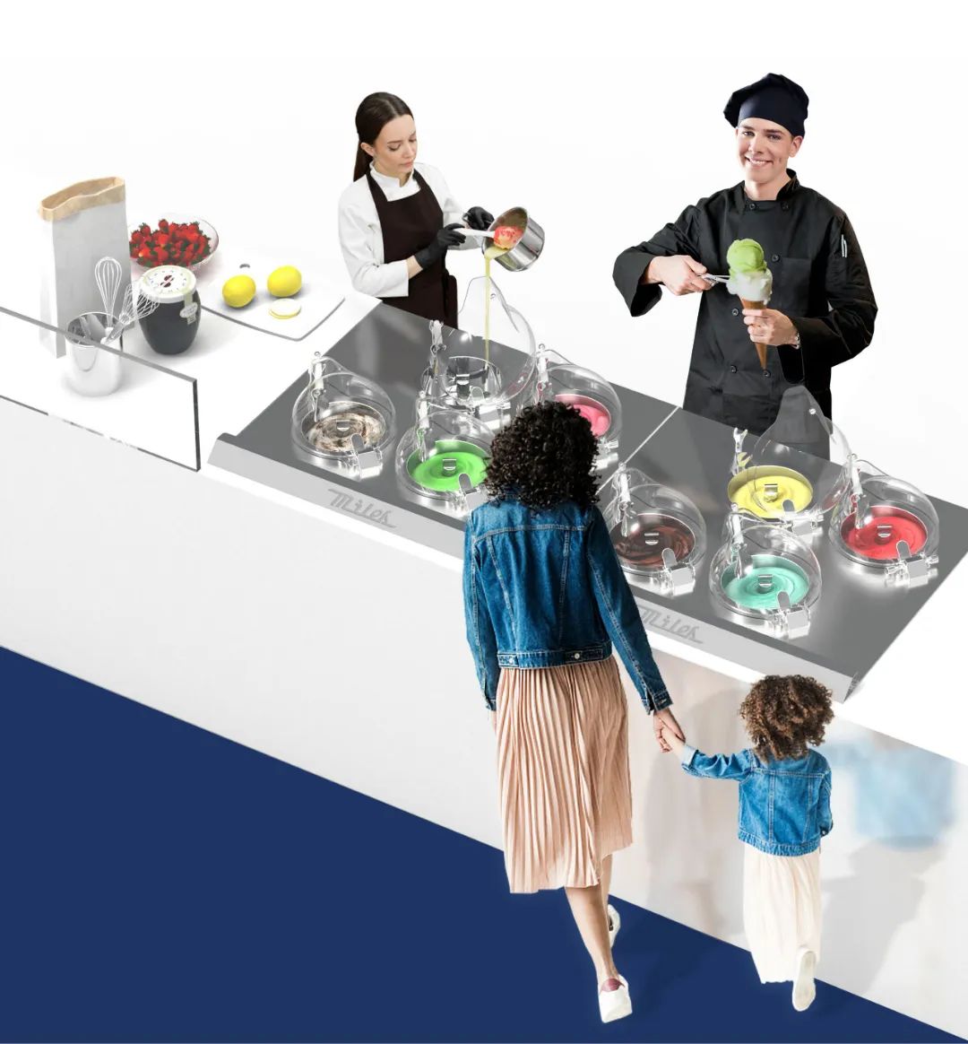 作为目前冰淇淋行业内集多功能于一体的独有新鲜理念的先进设备——ARTISAN PRO系列前台智能冰淇淋机,取代了传统后台冰淇淋制作设备组及前台展示冷冻柜,以实现后台制作转变前台可视化新鲜制售冰淇淋的创新零售模式。