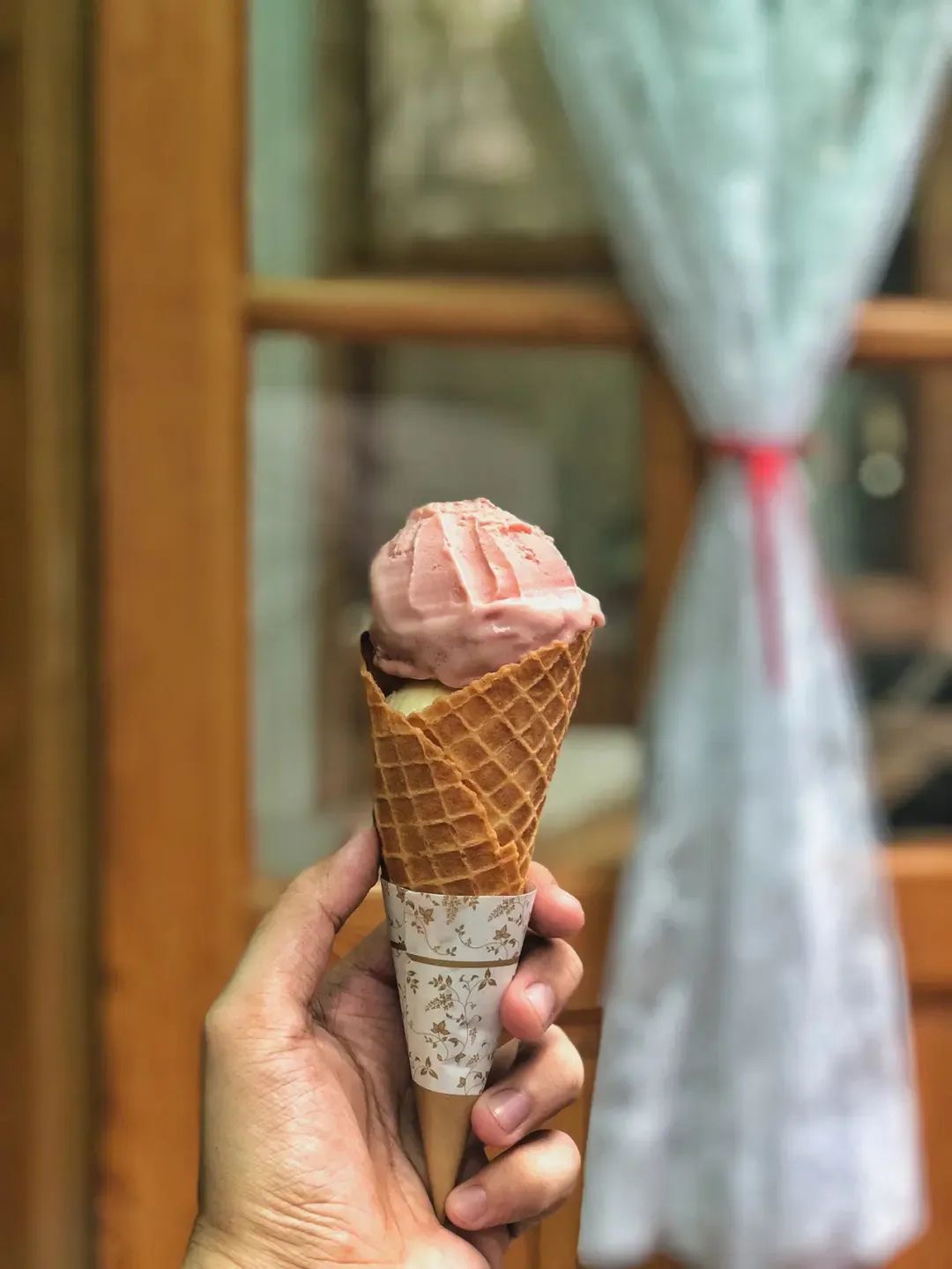 绵而柔和的冰淇淋包裹着舌头,融合着浓浓的奶味有着各种原料本身的香味和食材的味道。没有工业冰淇淋明显的齁甜,但是本身的香甜在入嘴以后,甚至到了喉头还能源源不断地泛出来。这是一种持续的愉悦,一切都要来源于对味觉的敏感和挑剔。