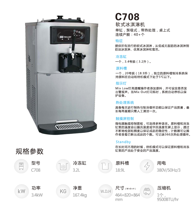 C708 泰而勒 软式冰淇淋机(单缸,带抽料泵,热处理系统)