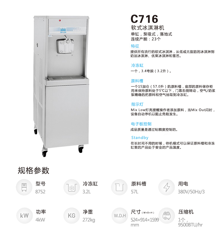 8752 软式冰淇淋机(单缸、带抽料泵)