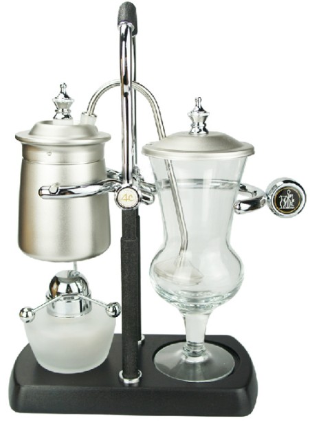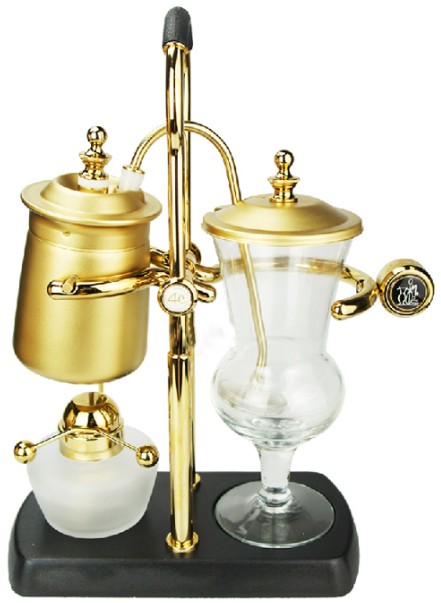 比利时咖啡壶,发明人是英国造船师傅 James Napier,早在19世纪已经是比利时皇室的御用咖啡壶。为了彰显皇家气派,比利时工匠费心打造这把造型优雅的壶具,包金铸铜,把原本平凡无奇的咖啡壶,打造得光灿耀眼、体面非凡,彷佛与生带来一股贵族气。摆放在咖啡店里、办公室或是家里也很美观。从外表来看,它就像一个对称天平,右边是水壶和酒精灯,左边是盛着咖啡粉的玻璃咖啡壶。两端靠着一根弯如拐杖的细管连接。 比利时咖啡壶制作咖啡简单,制作出的咖啡口味纯正,可以享受自己煮制咖啡的奇妙感觉。