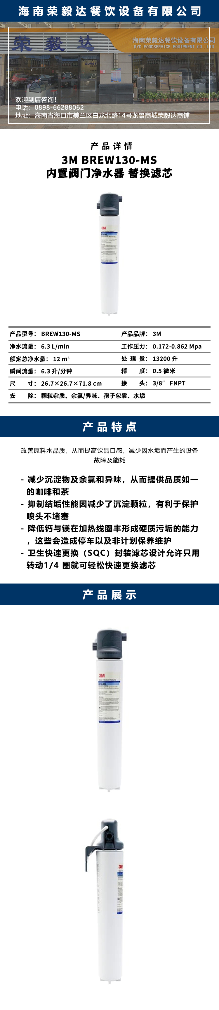 3M BREW130-MS 内置阀门净水器 替换滤芯