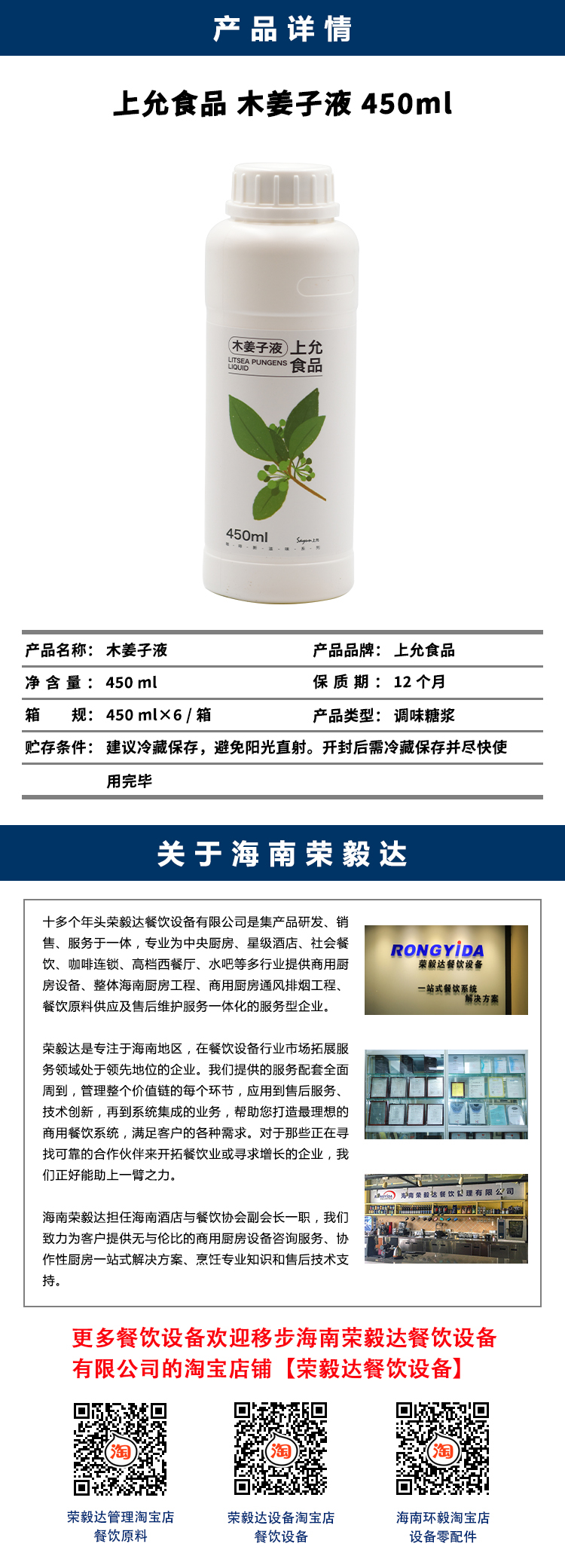 上允食品 木姜子液 450ml