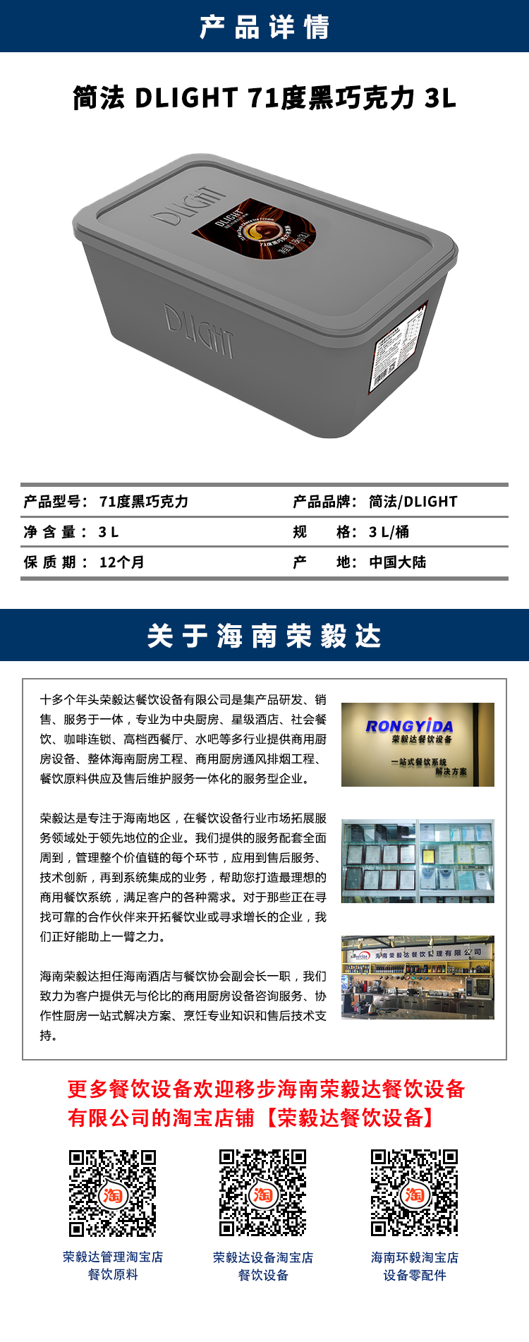 简法 DLIGHT 71度黑巧克力 3L