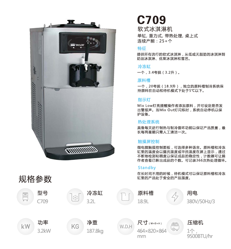 C709 泰而勒 软式冰淇淋机(单缸,热处理系统)