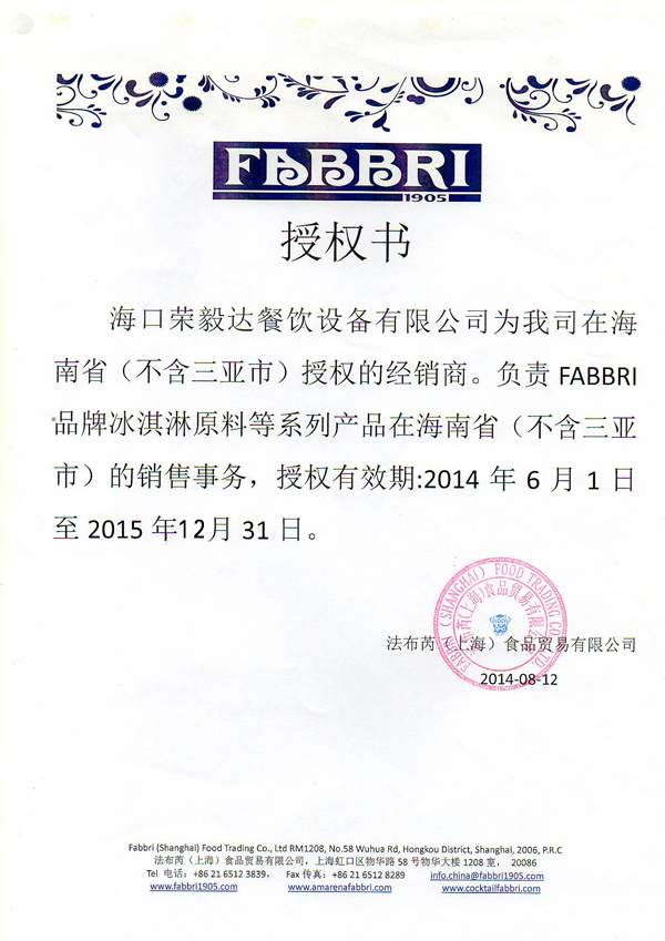 法布芮(FABBRI)授权书