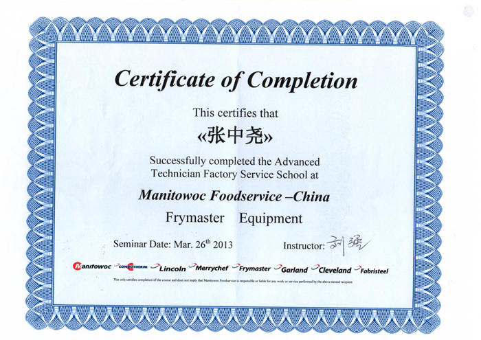 马尼托尔Manitowoc荣誉证书
